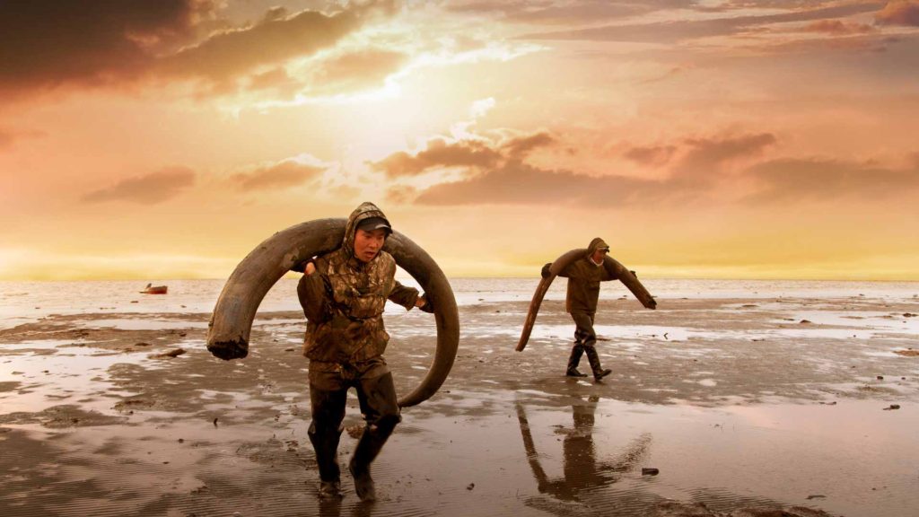 The film observes the harsh and dangerous life of so-called mammoth hunters on the remote New Siberian Islands in the far north of Siberia. The archaic landscape in which these people are looking for the tusks of extinct mammoths looks like primordial earth. There is a kind of gold rush fever in the air, because the prices for this white gold have never been so high. But the thawing permafrost unveils more than just precious ivory. Sometimes the hunters find an almost completely preserved mammoth carcass with fur, liquid blood and muscle tissue on which arctic foxes gnaw.